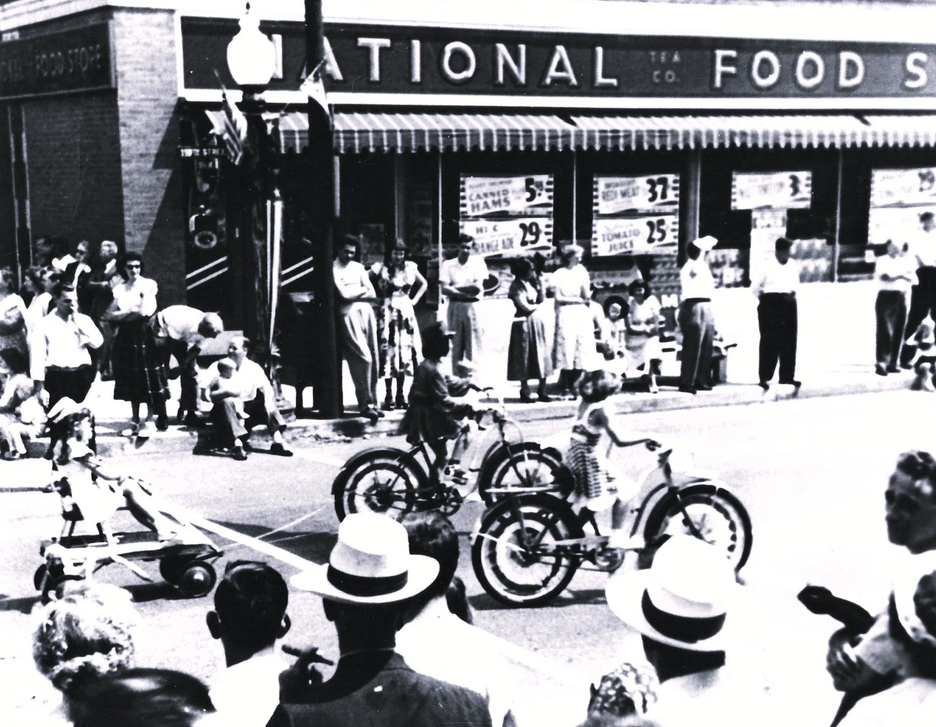 The Fourth of July parade passes in front of the National Tea Company’s grocery store located at the corner of 119th Street and Central Avenue in this photo from the early 1950s.