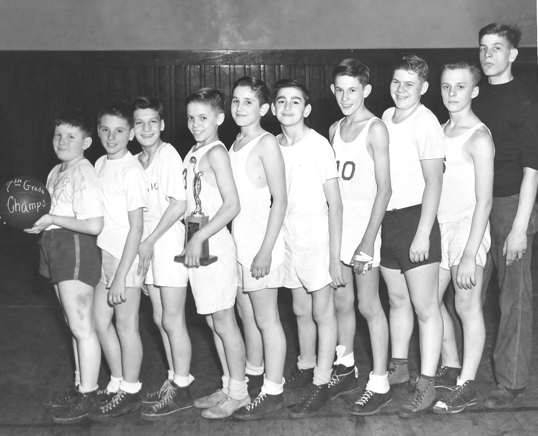 For young champions, March is the time to dream of making a buzzer-beater in the big game, as maybe these 7th grade champions of the Whiting Community Center’s 1940 basketball season once dreamt.