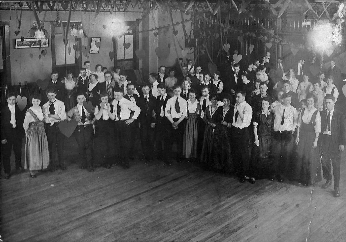 Hearts dangle from the ceiling in this photo, believed to have been taken around 1915, possibly at Goebel’s Opera House in Whiting.